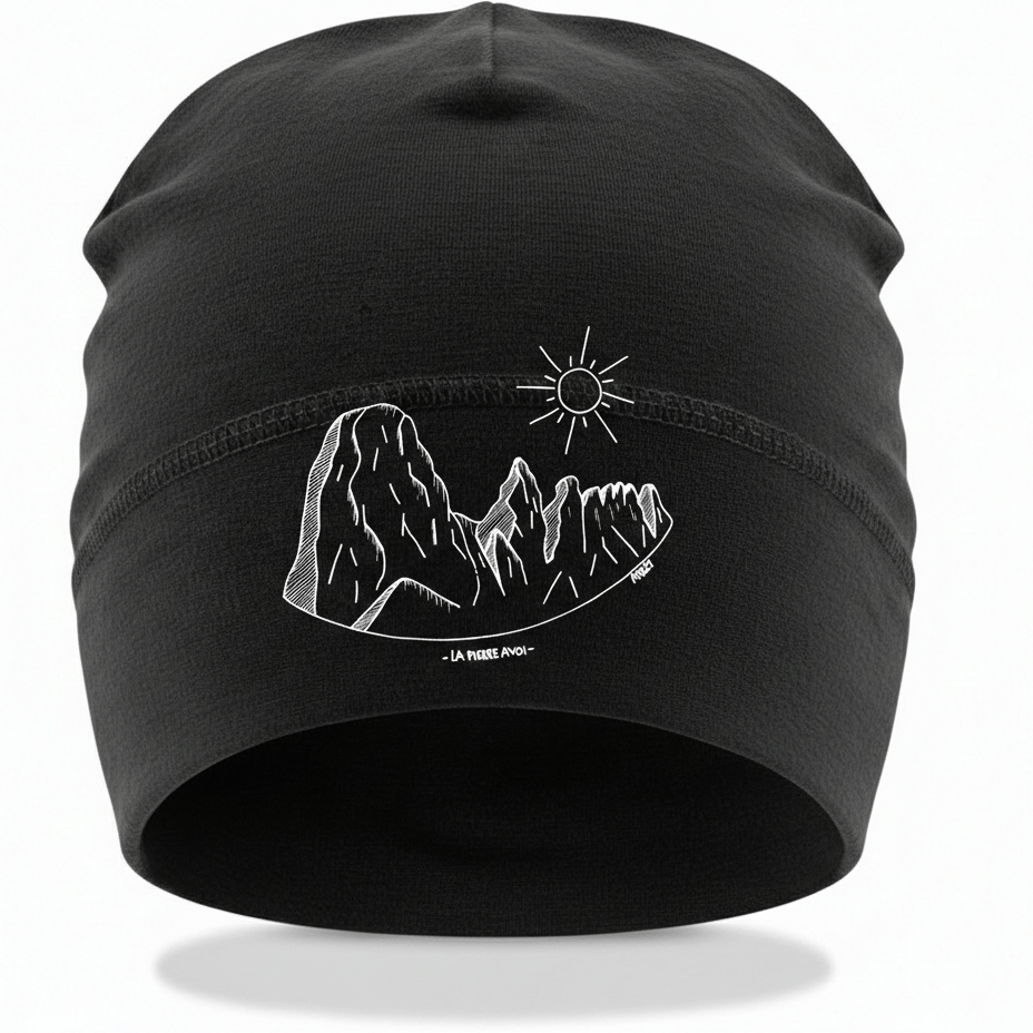 Avec sa jolie impression de la Pierre Avoi, ce bonnet unisexe en laine mérinos te permettra de garder ta tête au chaud que ce soit dans tes virées sportives, tes randonnées et balades en montagnes ou pendant tes vacances.