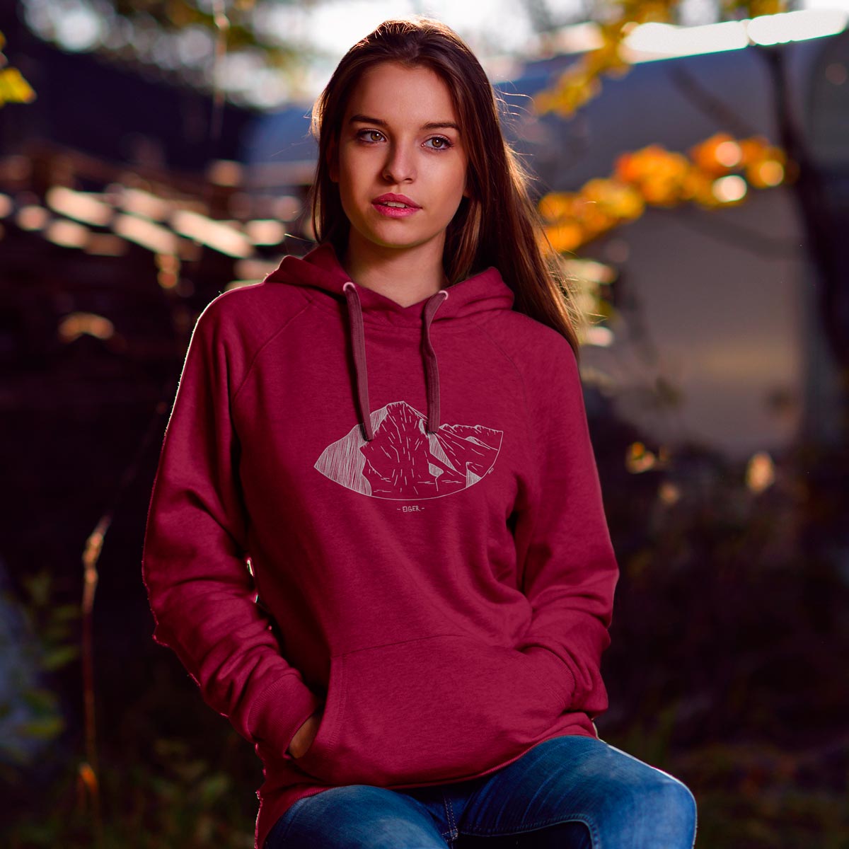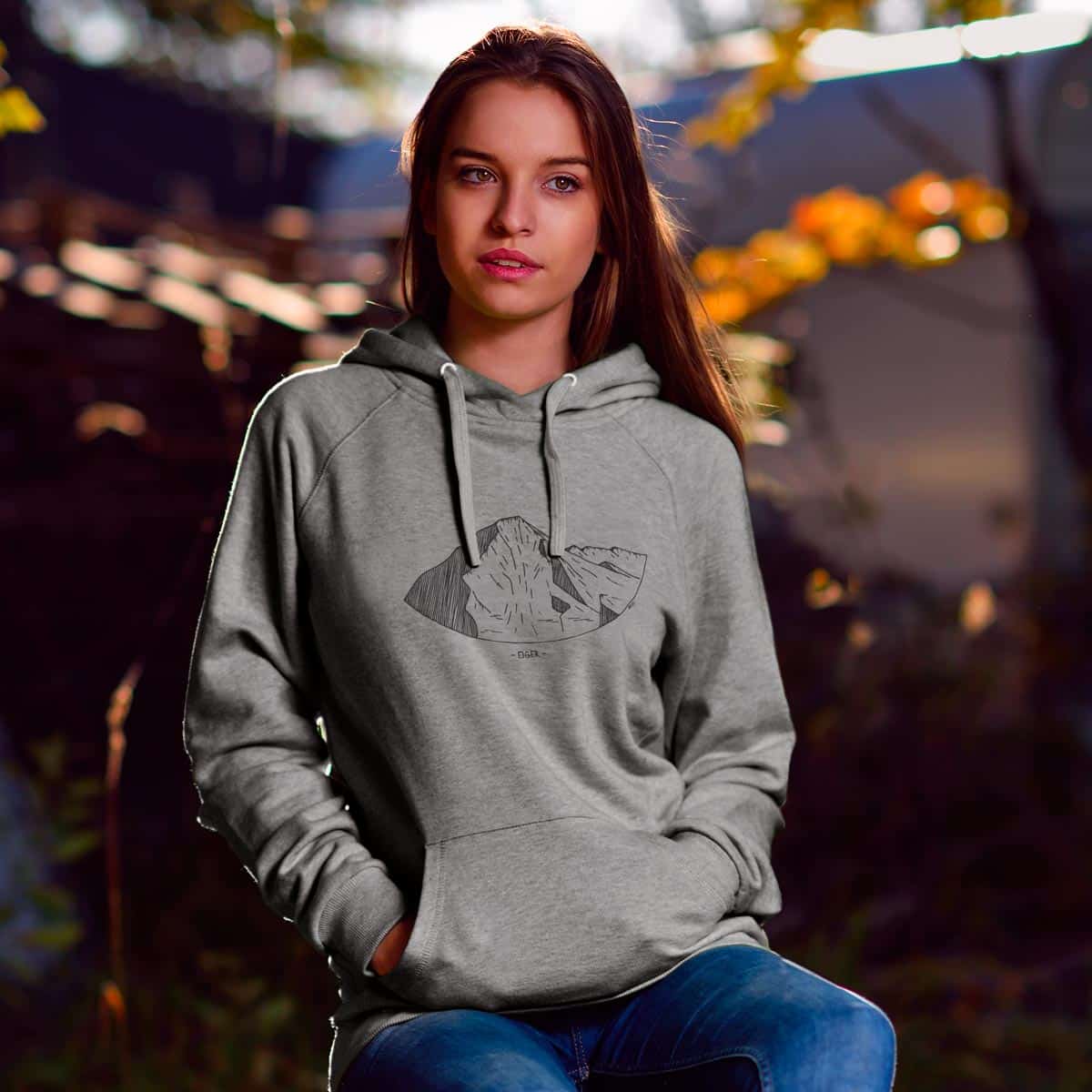 Ce superbe sweat à capuche pour femme disponible en plusieurs coloris avec sa jolie impression de l'Eiger saura vous rendre authentique. L'Eiger est un majestueux sommet des Alpes bernoises en Suisse culminant à 3 970 m). Célèbre dans le monde entier, cette montagne l'est non seulement pour sa beauté imposante, mais surtout pour sa terrifiante Face Nord.